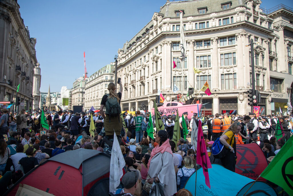 Similar spatial strategies have also been adopted by urban populations and demonstrators. Learning the characteristics of the city, and appropriating them to their benefit, is one way for citizens to multiply the impact of their protest. In London, rallies traditionally march from Parliament Square to Trafalgar Square along Piccadilly. These are the symbolic spaces of political representation in the city, with a long history of protest. They are, however, not necessarily crucial to transport in the city. Huge numbers of people are needed to fill them and leaving them half empty only risks proving the lack of support for a cause. In 2018, Extinction Rebellion took a different approach. With a small number of people, they blocked Waterloo Bridge and Oxford Circus, key points in the traffic network of the city, or what we can call ‘instrumental spaces’ – being more ‘useful’ than ‘symbolically meaningful’. Their presence rippled through the city, affecting traffic for miles around. A gathering of 100 had more practical impact on the city than a parade of 100,000 on Piccadilly. They had to be listened to. Even more dramatically, in 2018, a single drone flown by an unknown operator caused the shutdown of Gatwick Airport in London, stopping hundreds of flights. It was speculated that this might also be an environmental protest but it turned out to be a local couple with no apparent motive. Either way, they showed how an individual can amplify their actions by aiming them at new infrastructural centralities. Does protest need to learn the changing configurations of the built environment to be heard? Does it need to leave behind or upgrade its traditions, and focus on the new infrastructural connections that really keep cities moving?